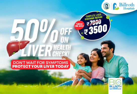 Take control of your liver health with Billroth Hospitals’ exclusive 50% OFF – (Limited Time Offer) Liver Health Check Package.